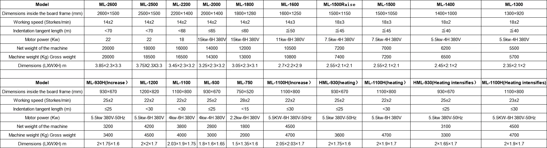 Es el equipo especial para presionar y cortar varios materiales duros con muchas líneas de cuchillo, como cartón corrugado, hoja de plástico, cuero y otros productos.
